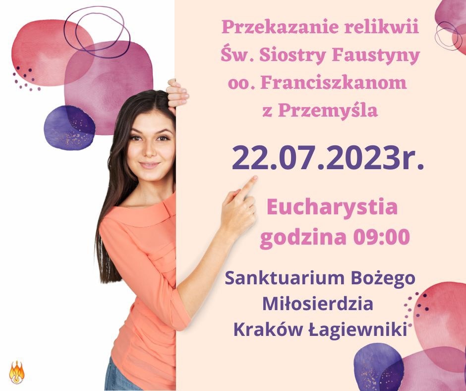 Już 22 lipca o godzinie 09:00 w Sanktuarium Bożego Miłosierdzia w Krakowie, zostaną oo. Franciszkanom z Przemyśla przekazane relikwie Świętej Siostry Faustyny Kowalskiej